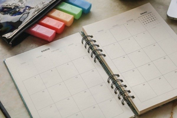 Trae además 12 meses de organizadores mensuales y hojas de notas al final.